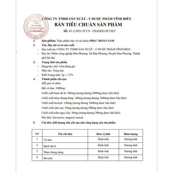 ❤❤Thành Phần: Mỗi viên Thực Phẩm Bảo Vệ Sức Khỏe PHỤC HOÀN NAM chứa cao chiết xuất từ hỗn hợp dược liệu