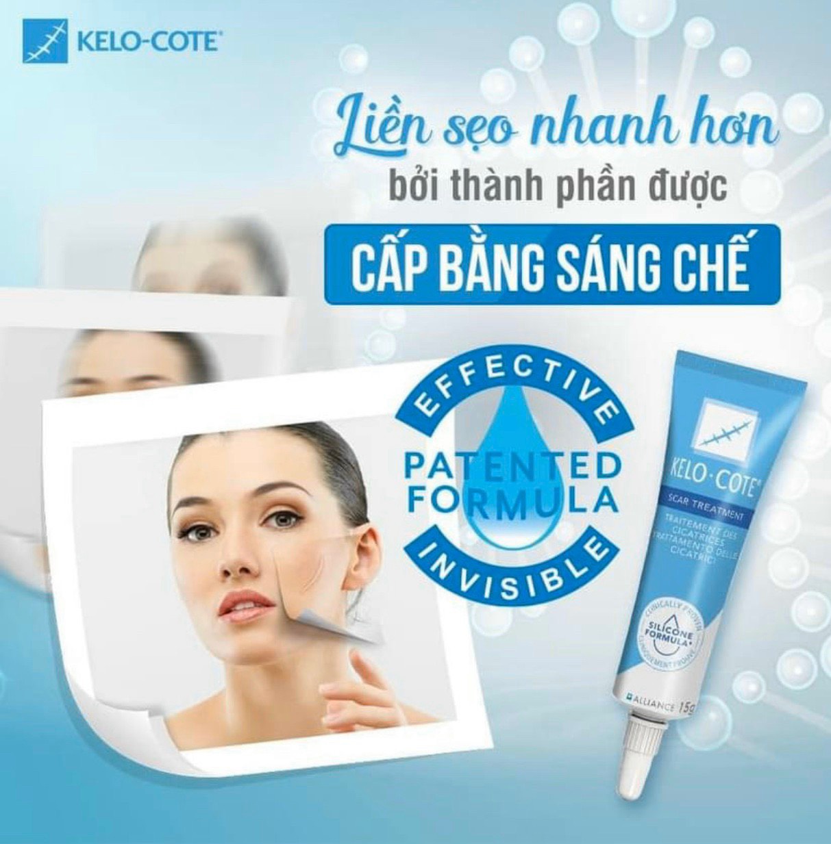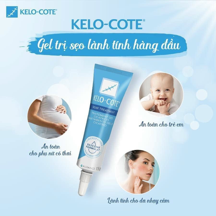 - Gel ngăn ngưa sẹo Kelo-Cote mang đến công nghệ Silicone Gel nhanh khô, không dính, không mùi, không gây ra tác dụng phụ, không gây ngưa, vi.em nhiên, phù hợp cho mọi bề mặt da, mọi thích thước sẹo.