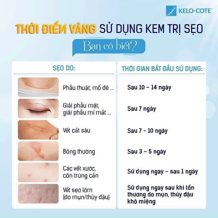 - Chỉ sử dụng sau khi vết thương lành hẳn, và muốn nhan lành sẹo thì nên sử dụng càng sớm càng tố ngây khi miệng vết thương đã khép lại (sau khi đã tháo chỉ khâu).