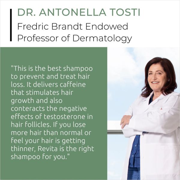 Dầu gội Revita® CBD được tăng cường với 150 mg CBD phổ rộng (cannabidiol) để giúp tăng cường tóc và chống lại các dấu hiệu mỏng. CBD thâm nhập sâu bên dưới bề mặt da đầu để làm dịu kích ứng, cung cấp năng lượng cho nang trứng và tăng cường chu kỳ phát triển của tóc. Nó cũng hạn chế tác dụng của DHT, một loại hormone dựa trên testosterone gây rụng tóc.
