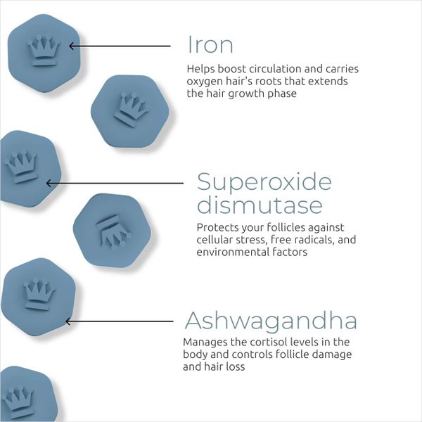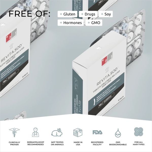 Viên nén chống oxy hóa Revita.SOD® hỗ trợ sự phát triển của tóc bằng cách giúp cơ thể kiểm soát căng thẳng. Công thức độc quyền của chúng tôi, được tăng cường với Superoxide Dismutase và Ashwagandha, đã được chứng minh là làm giảm các gốc tự do do căng thẳng và môi trường.